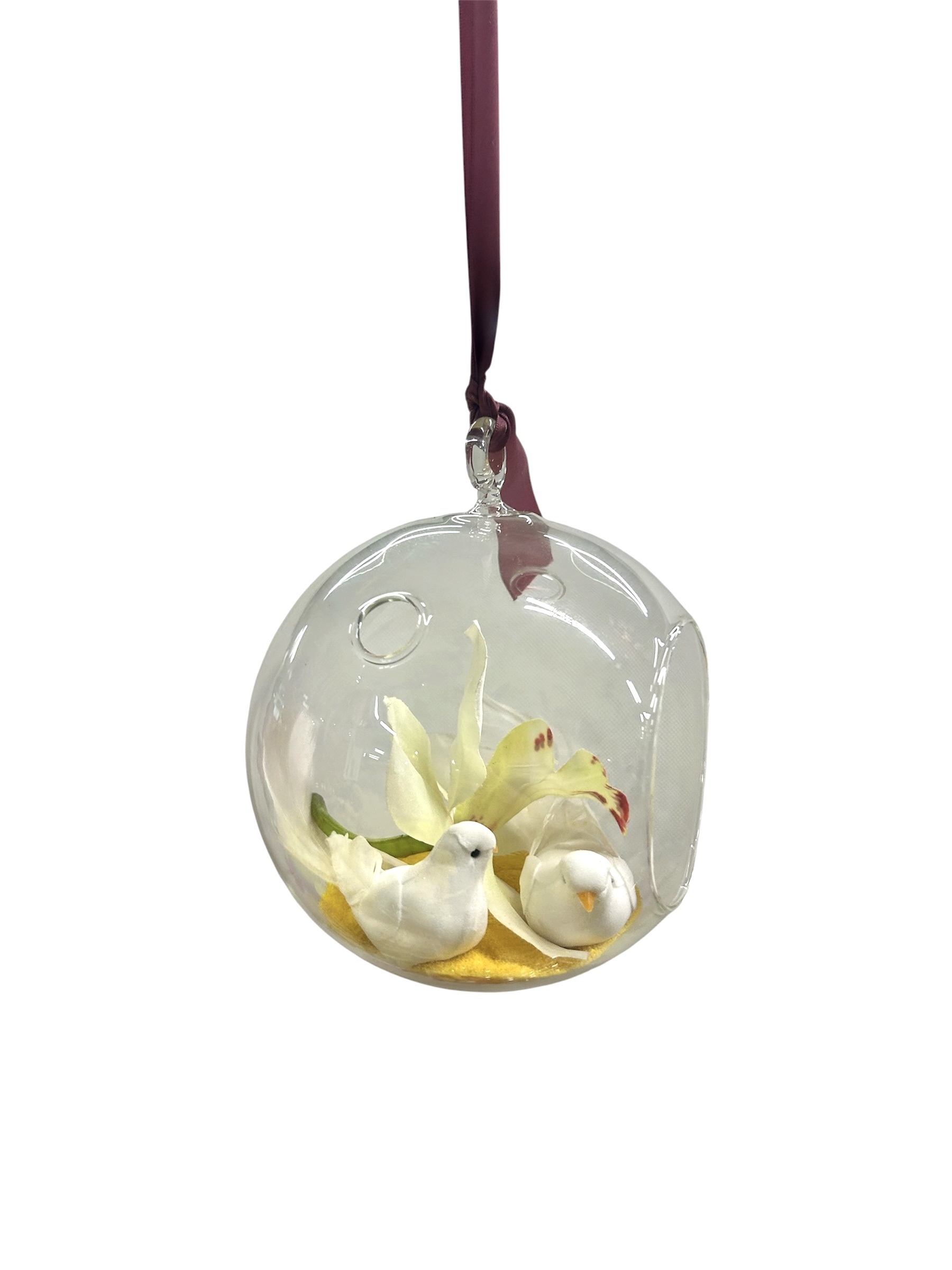 Boule pasquale in vetro con uccellini e fiori – da appendere